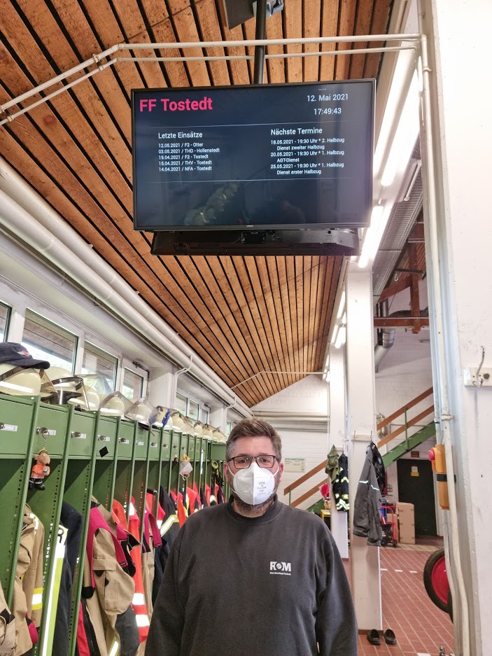 Mitten in den Zeiten der Corona-Pandemie konnten die Monitore für ein Infosystem im Feuerwehrhaus der Feuerwehr Tostedt in Betrieb genommen werden. Die Monitore zeigen den alarmierten Helfern an, zu was für einem Einsatz sie gerufen werden. Neben den alarmierten Fahrzeugen wird auch eine Karte mit dem Einsatzort angezeigt. Ortsbrandmeister Birger Meyer freut sich über die Unterstützung durch den Förderverein der Feuerwehr in der Gemeinde Tostedt e. V. . Die Unterstützung derartiger Projekte zeigt den Mitgliedern der Feuerwehr, die Wertschätzung Ihrer Arbeit.